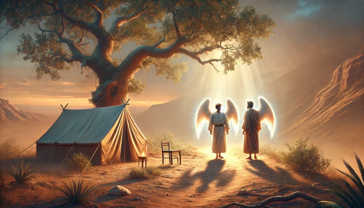 Em Gênesis 18, três visitantes — um identificado como o Senhor e dois como anjos — se aproximam de Abraão. Eles aparecem como homens comuns, compartilham uma refeição e entregam a alegre, mas improvável notícia de que Sara dará à luz um filho (Gênesis 18:1-15). Sua aparência humana tornou a interação acessível e pessoal.